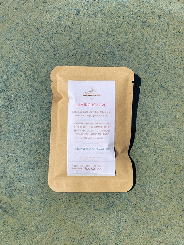 Chocolat blanc 36% bio, betterave rouge bio, maca bio, gingembre bio.